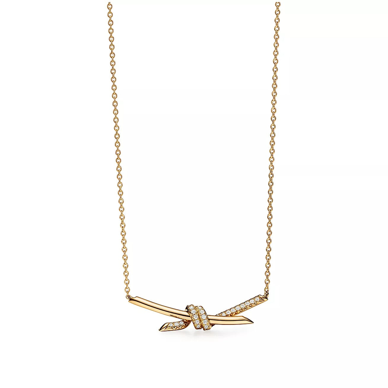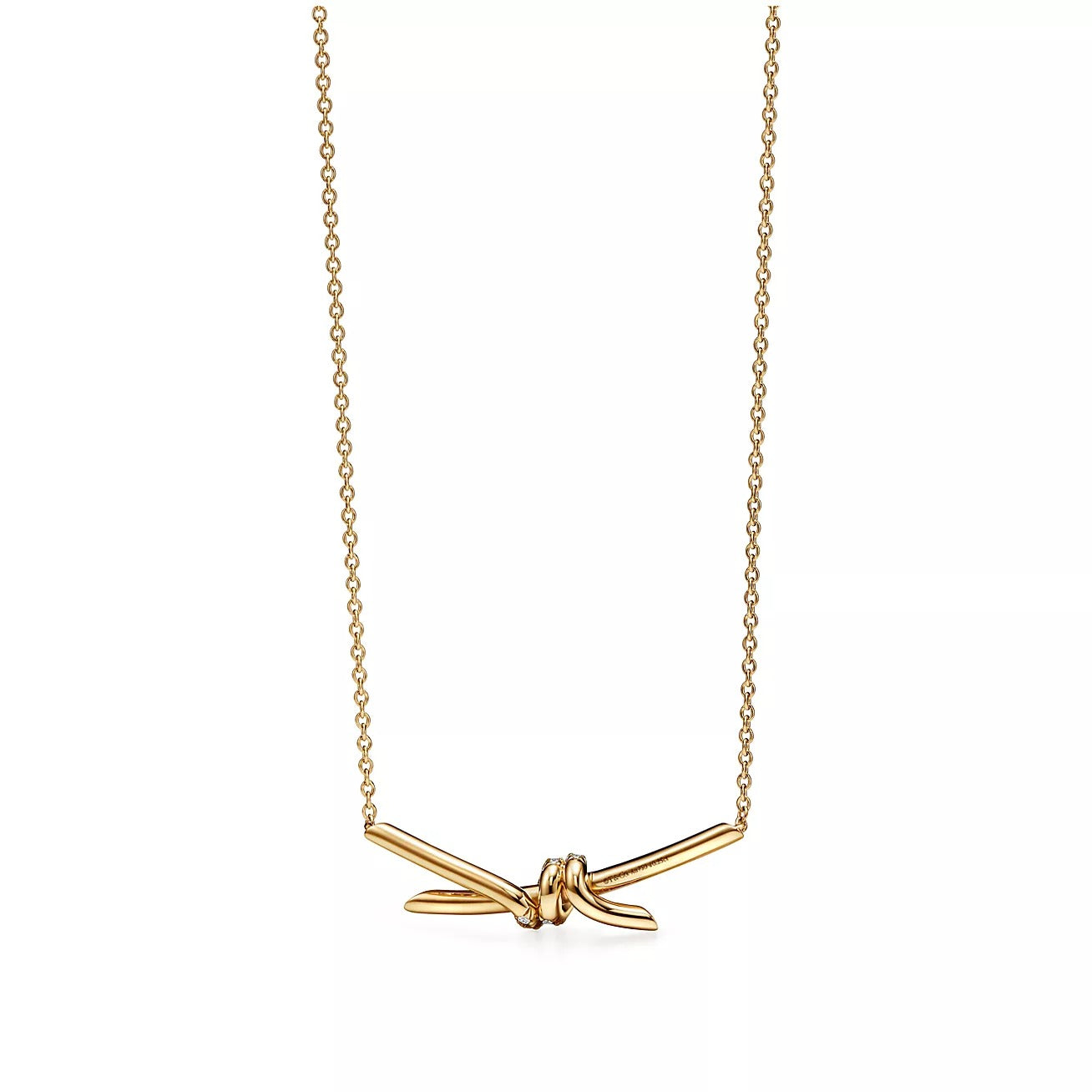 ティファニー ノットの特徴的なモチーフである絡み合う両端の部分は、人々を結びつける絆の力を象徴しています。強さとエレガンスが絶妙に調和したティファニー ノットのデザインは、卓越したクラフトマンシップの精緻な技巧の証です。艶やかなイエローゴールドに光り輝くパヴェ ダイヤモンドがあしらわれたこのネックレスは、手作業でひときわ美しい光沢に磨き上げられています。ティファニーの厳格な基準を満たすために厳選された、一つひとつのラウンド ブリリアント カット ダイヤモンドは、輝きを最大限に引き出すために手作業で精巧な角度にセッティングされています。単独で身につけても、他のチェーンと重ねづけて意外性のある組み合わせもお楽しみいただけるネックレスです。